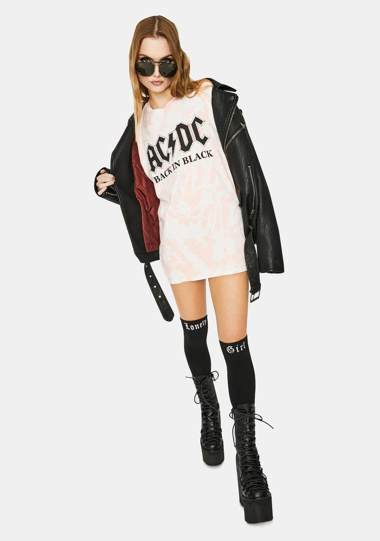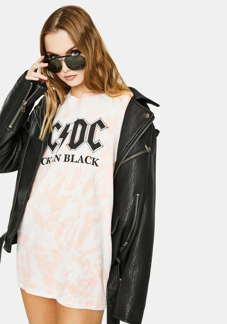 cuz you look like one of those rock guys girlfriends. This short sleeve graphic tee has a tie dye print and the AC/DC logo printed on the front.