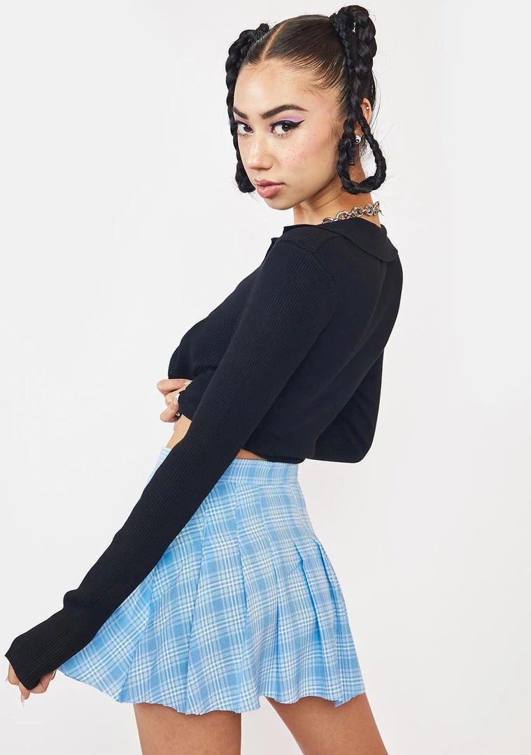cuz you spin the world around. This circle skirt has a plaid print and a pleated design.
