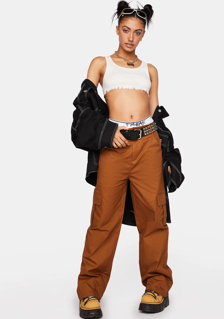 come with a high waist, wide leg, button zip front closure, front and back pockets, and cargo pockets.