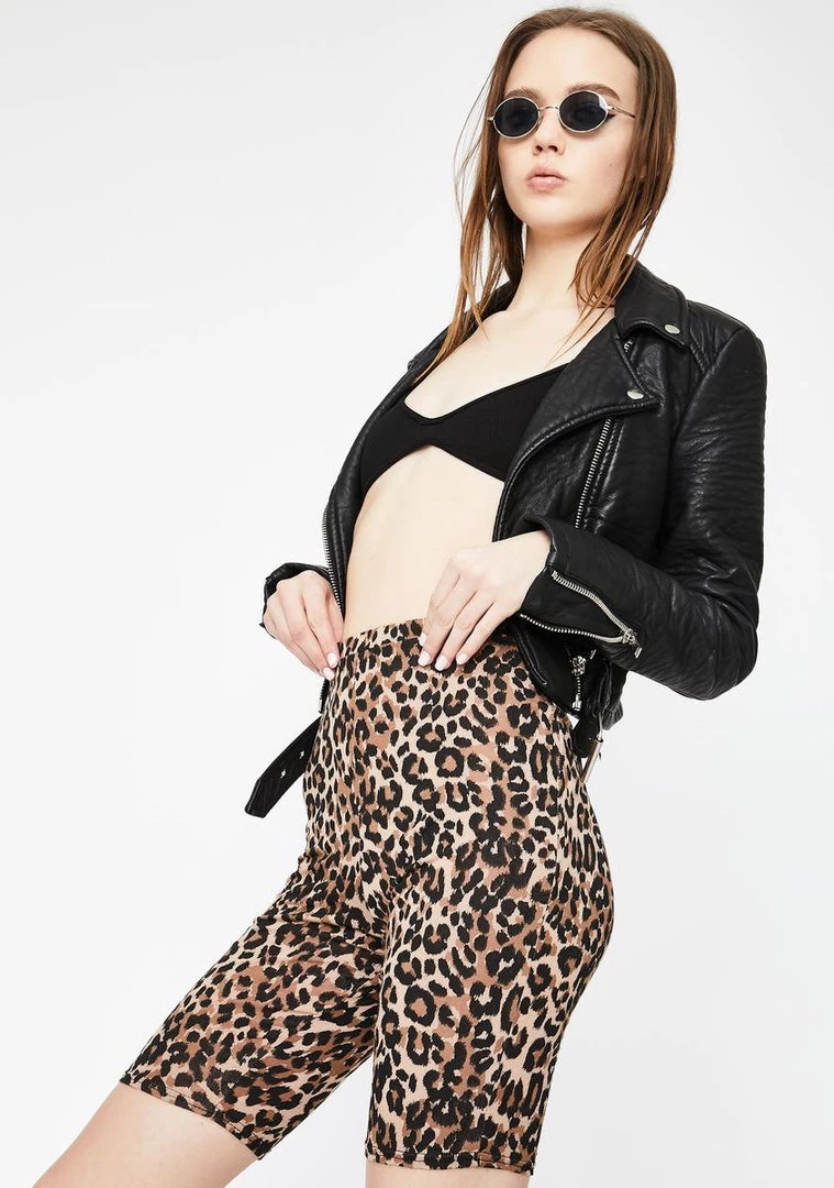 cuz ya stay runnin wild bb! Keep jaws dropped with ur killer good looks while wearing theze chic AF biker shorts with a bodycon stretchy fit and all over leopard spot animal print.