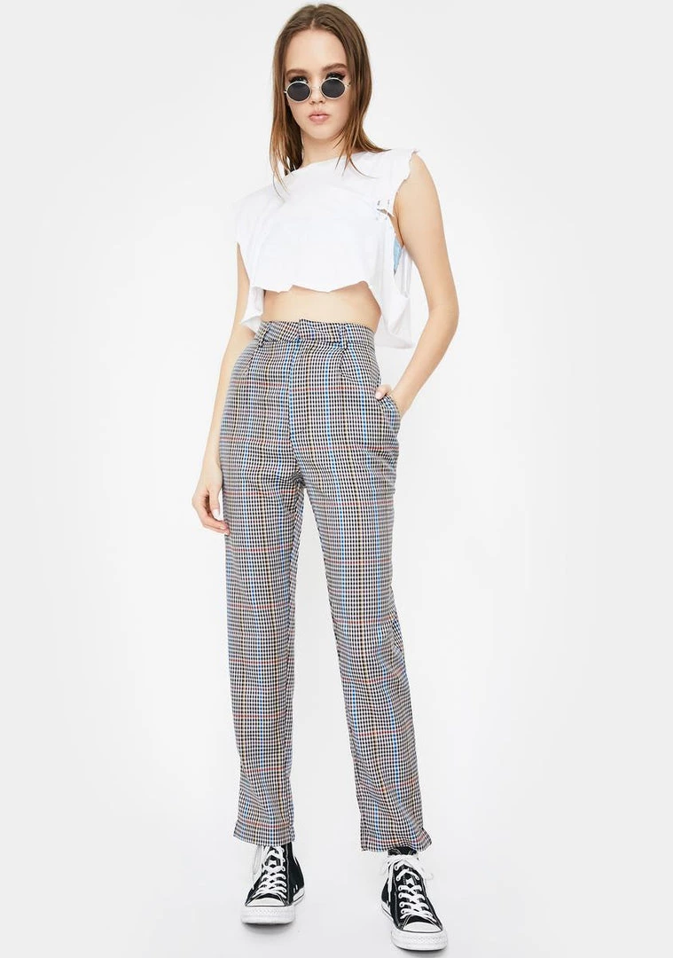 cuz everyone knowz ur name bb! Keep on lookinΓ’ΒΒ notorious while wearing theze punk AF high waisted pants with pleating at the top, a skinny tapered leg fit and plaid check pattern all over.