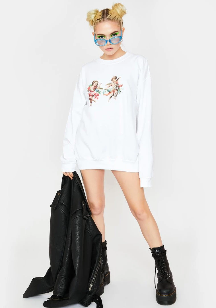 got Γ’ΒΒem feelinΓ’ΒΒ like theyΓ’ΒΒre on cloud 9 with u, bb! Give Γ’ΒΒem a taste of heaven lookinΓ’ΒΒ cute AF in this oversized crewneck sweatshirt with a sweet angel graphic on the front.