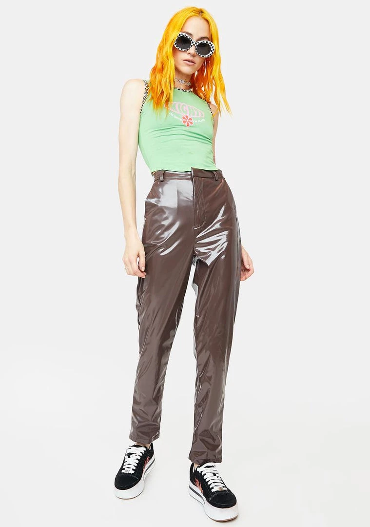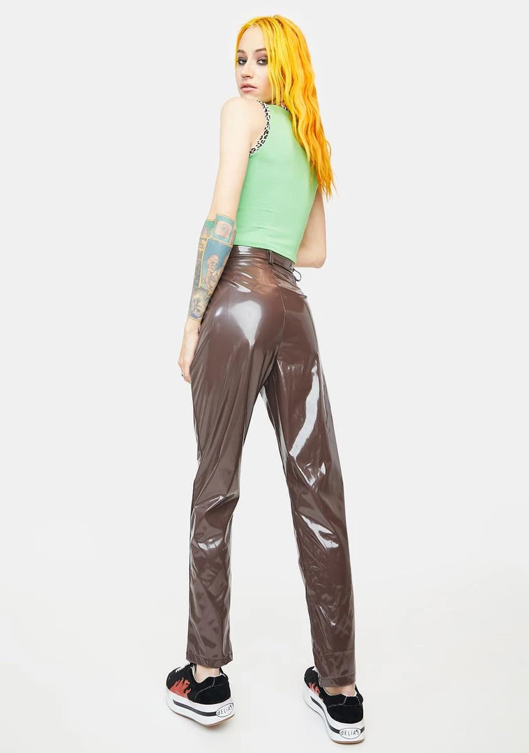 you’re smokin’ hot, hunnie. These trousers have a super high waist, a straight leg fit, and a metallic construction.