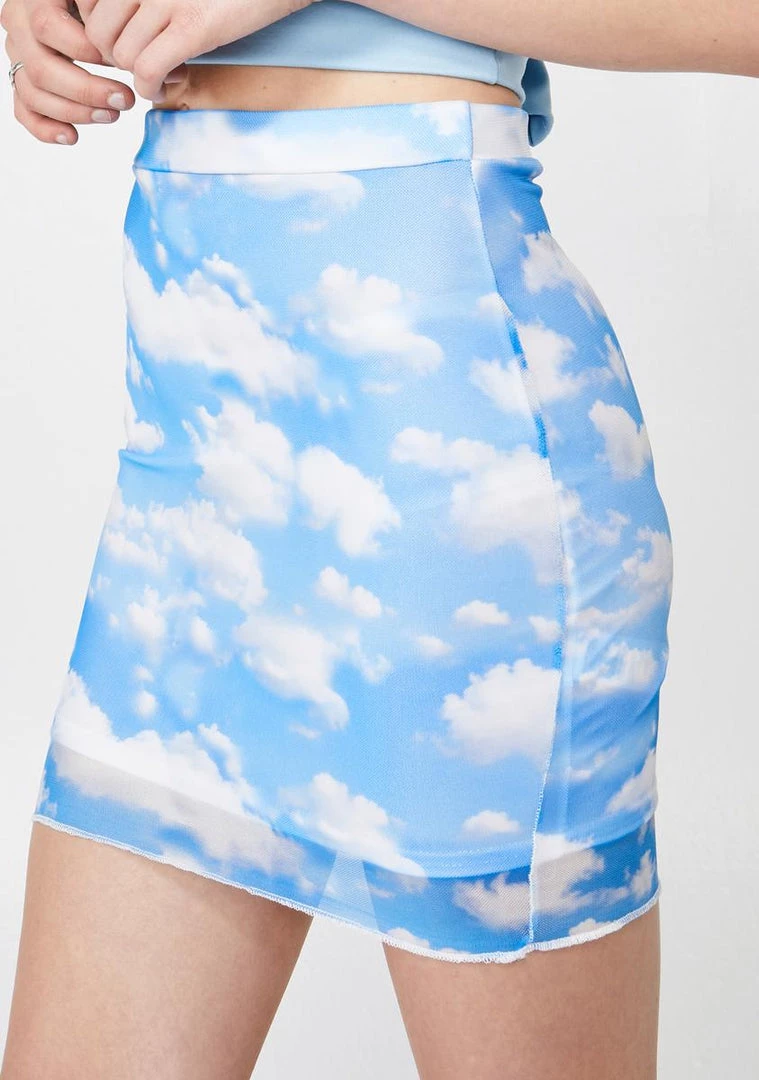 cuz you keep your head in the cloudz bb! They canΓ’ΒΒt bring ya down in this mesh mini skirt that has a cloud print all ova NΓ’ΒΒ is supa stretchy.