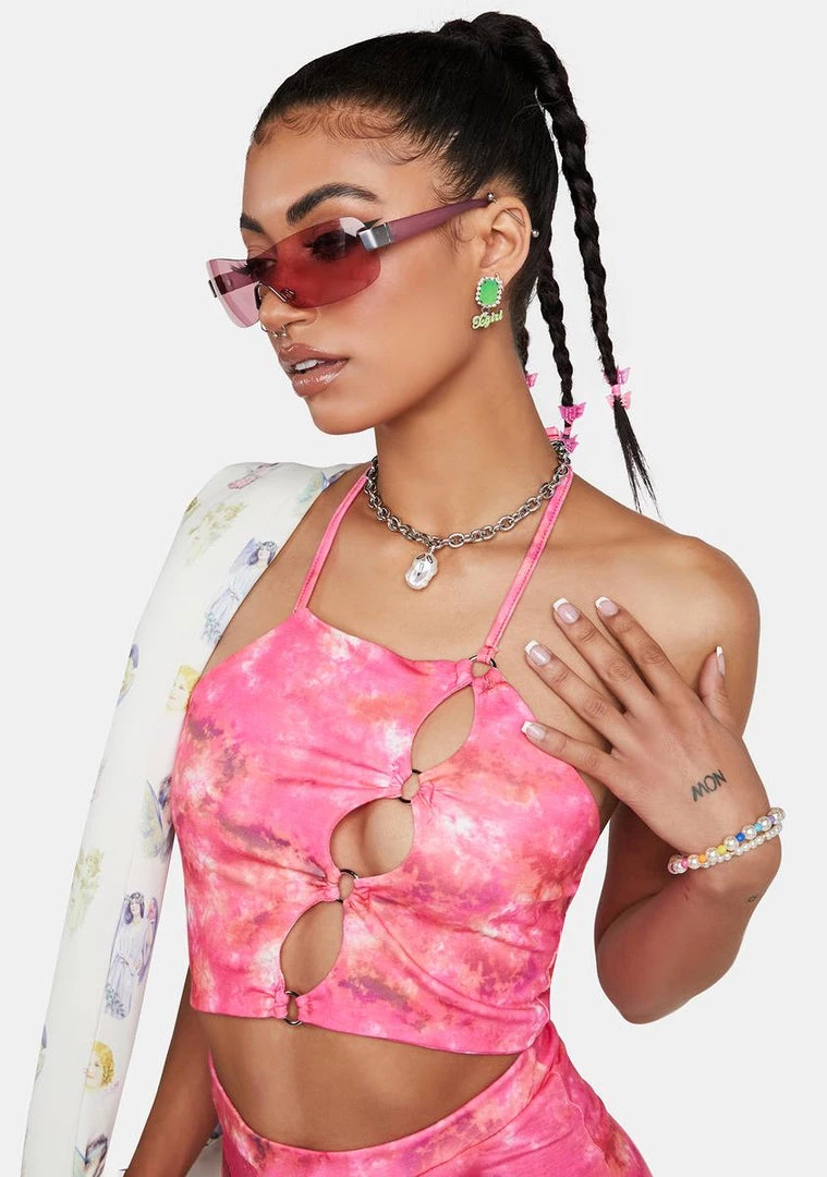 Top 10 ๐ Daisy Street Crop Halter Top Pink Tie Dye Strappy Crop Top ๐