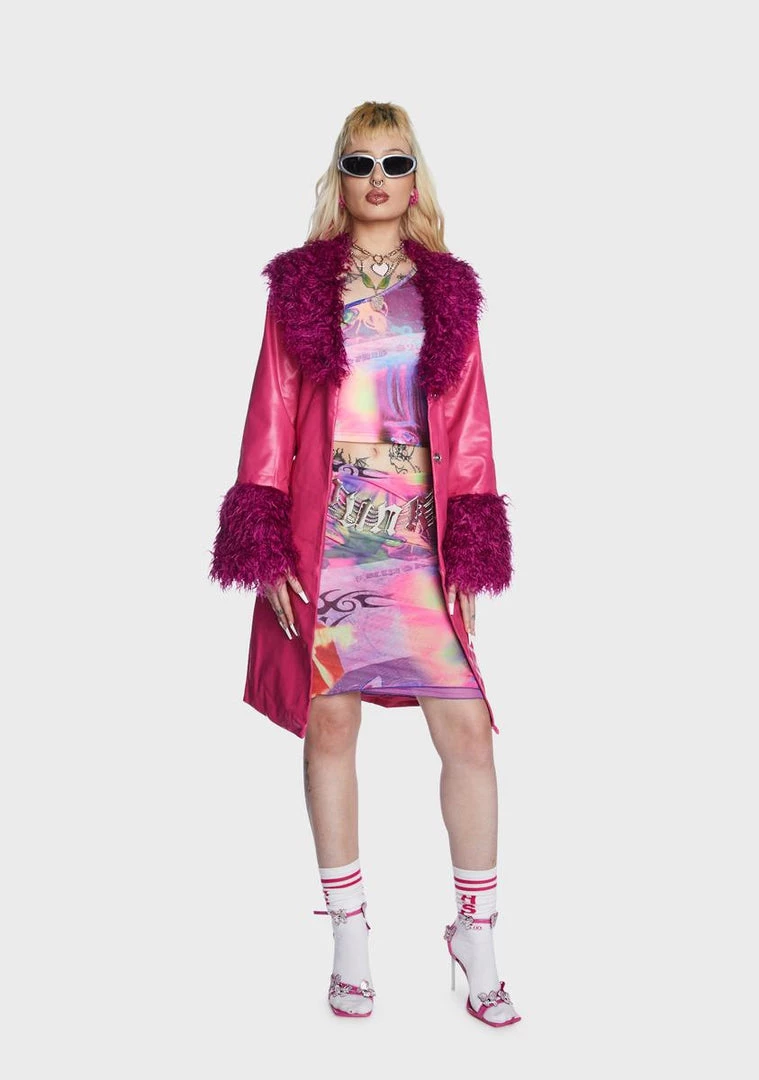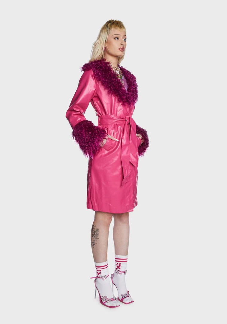 Buy ๐ Daisy Street Faux Fur ๐งฅ Coats Pink Faux Leather Fur Trim ๐งฅ Coat ๐