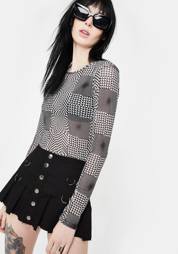 cuz what they see isnΓ’ΒΒt always what they get. Play mind tricks on Γ’ΒΒem in this sikk long sleeve top that has a sheer mesh construction with an optical illusion print all ova and stretchy fit.