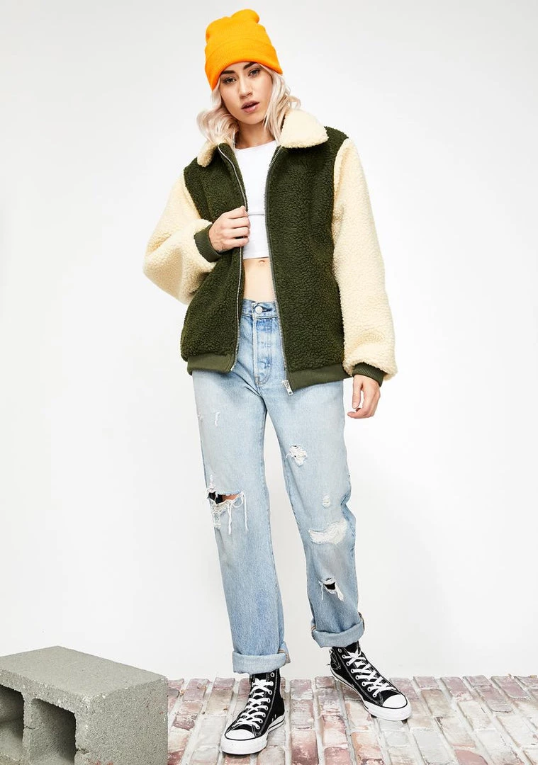 rules were made to be broken. Give ’em epic vibes in this long sleeve bomber jacket that has a supa soft teddy material all ova, relaxed lapel N’ front zip closure.