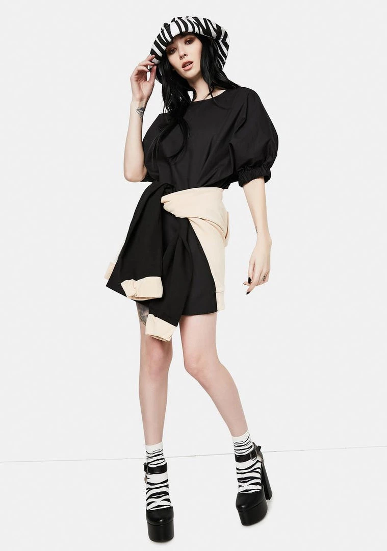 cuz youΓ’ΒΒre cute. This mini dress has puff sleeves and a relaxed fit.