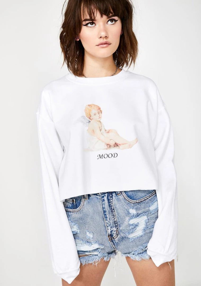 cuz youΓ’ΒΒre a moody lil angel. Let Γ’ΒΒem know in this super cute crop top that has a crew neckline, loose fit, and a front graphic.
