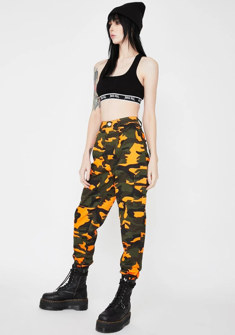 gotcha redefining Γ’ΒΒbad bishΓ’ΒΒ for the better, boo. Do the most in these dope AF cargo pants that have a sikk camo print, high waist fit, cargo pockets and a button zip closure.