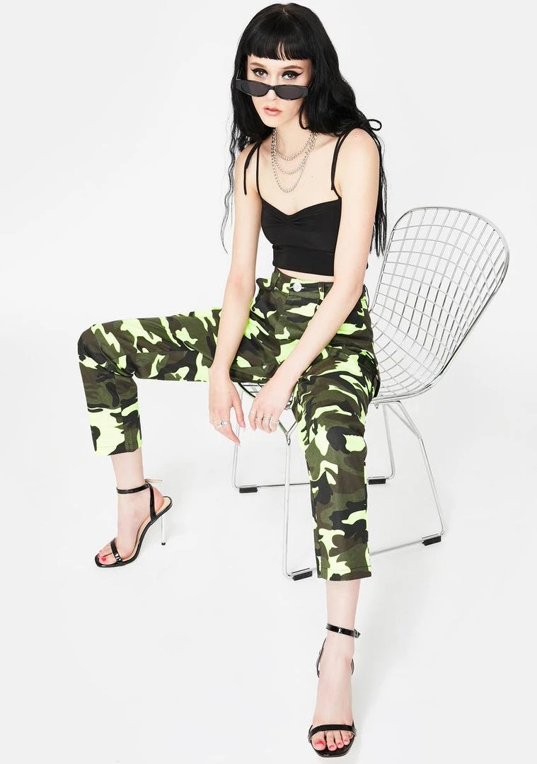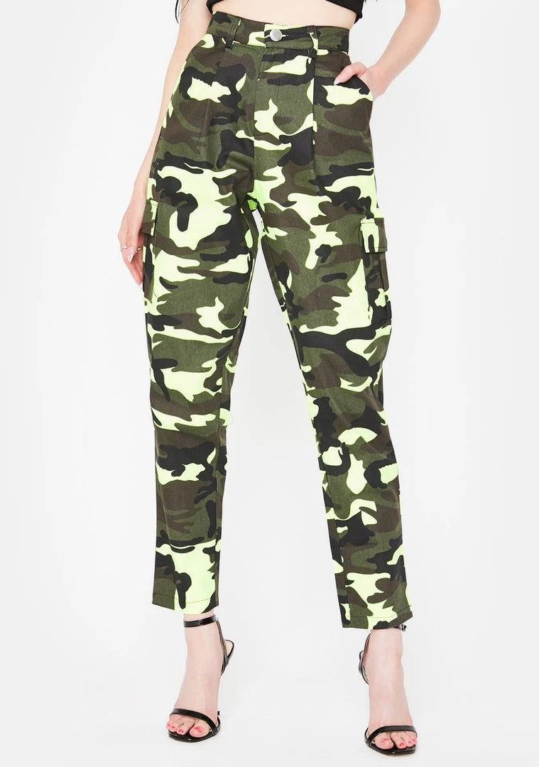 Best Sale π Daisy Street Neon Green Camo Cargo Pants Bottoms β€οΈ