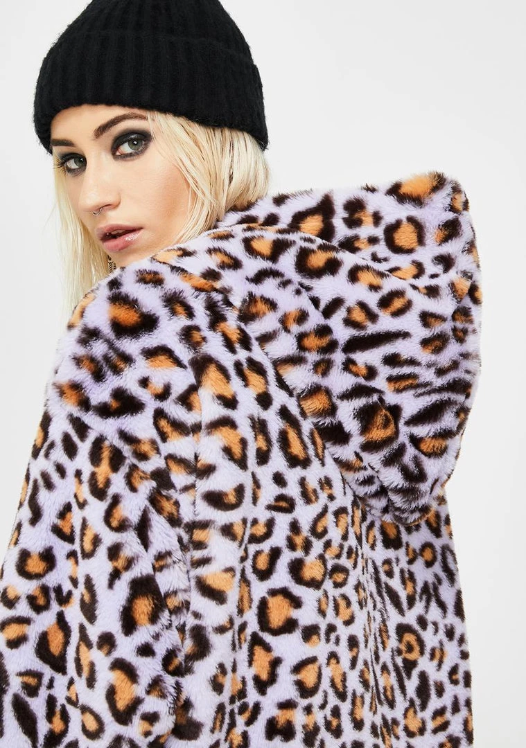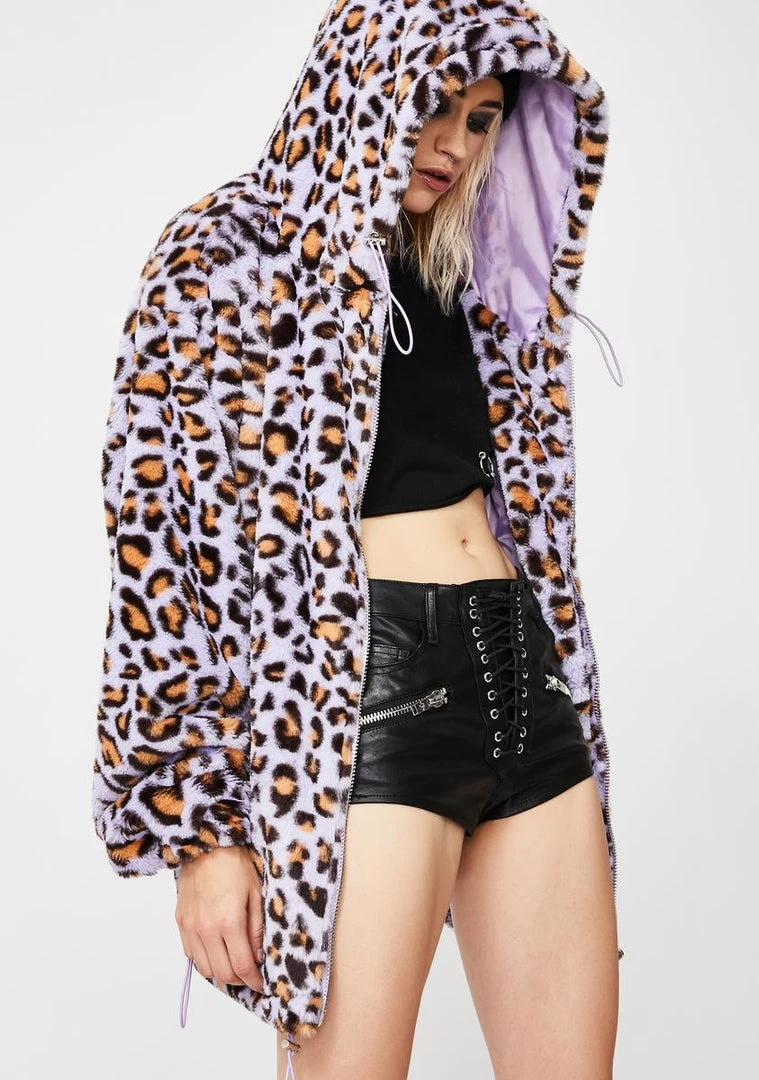 where does yer loyalty lie, babe?! You’re lewkin’ savage AF in this long sleeve fuzzy jacket that has a drawstring hood N’ cuffs, front zip closure, and fierce leopard print all ova.