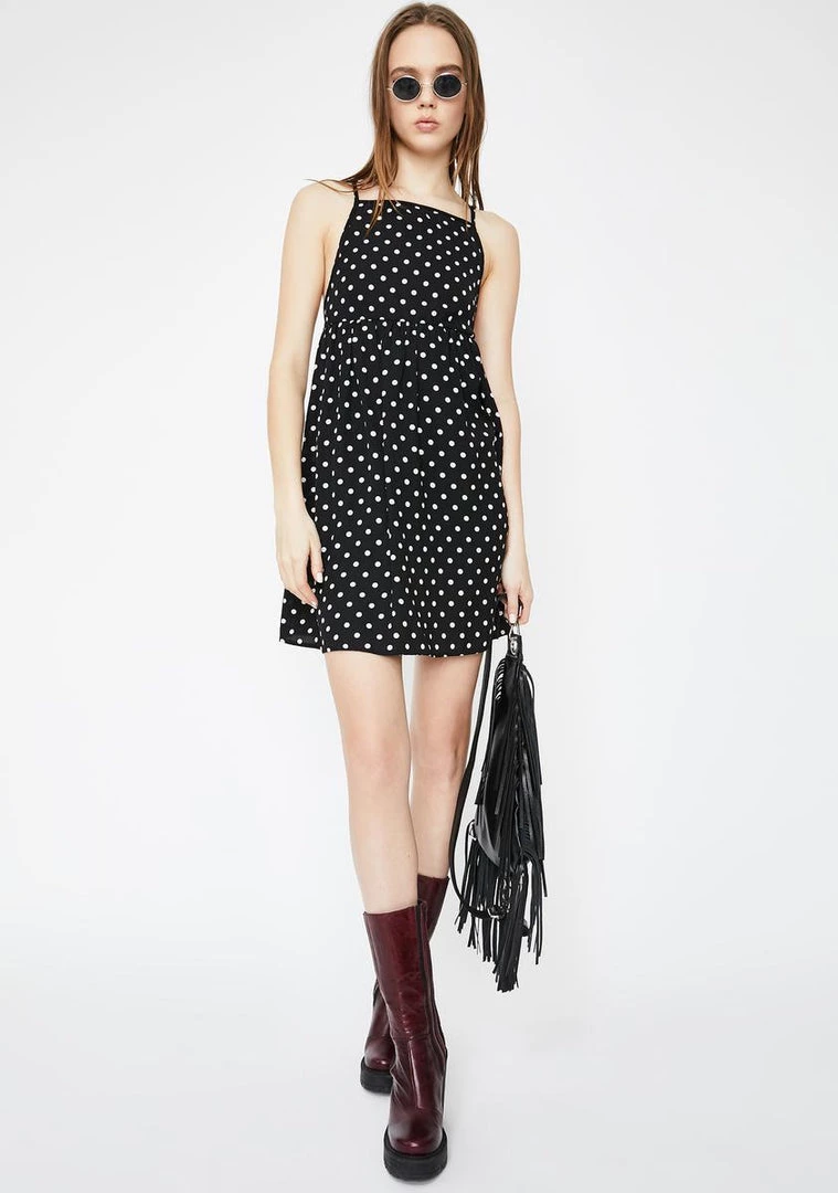got em rememberin u bb! Be tha one they canΓ’ΒΒt forget lookin cute in this sundress with a relaxed flowy fit and polka dot print all over.