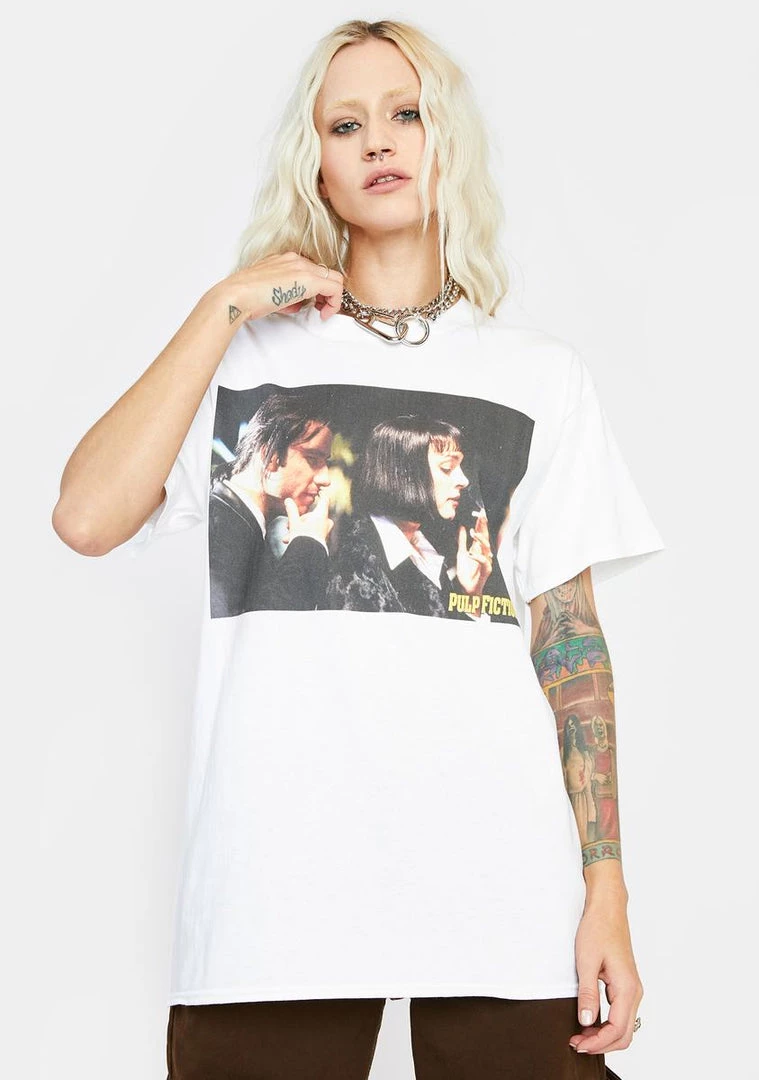 you’re a total mystery. This oversized tee has a relaxed fit and a Pulp Fiction graphic print across the chest.
