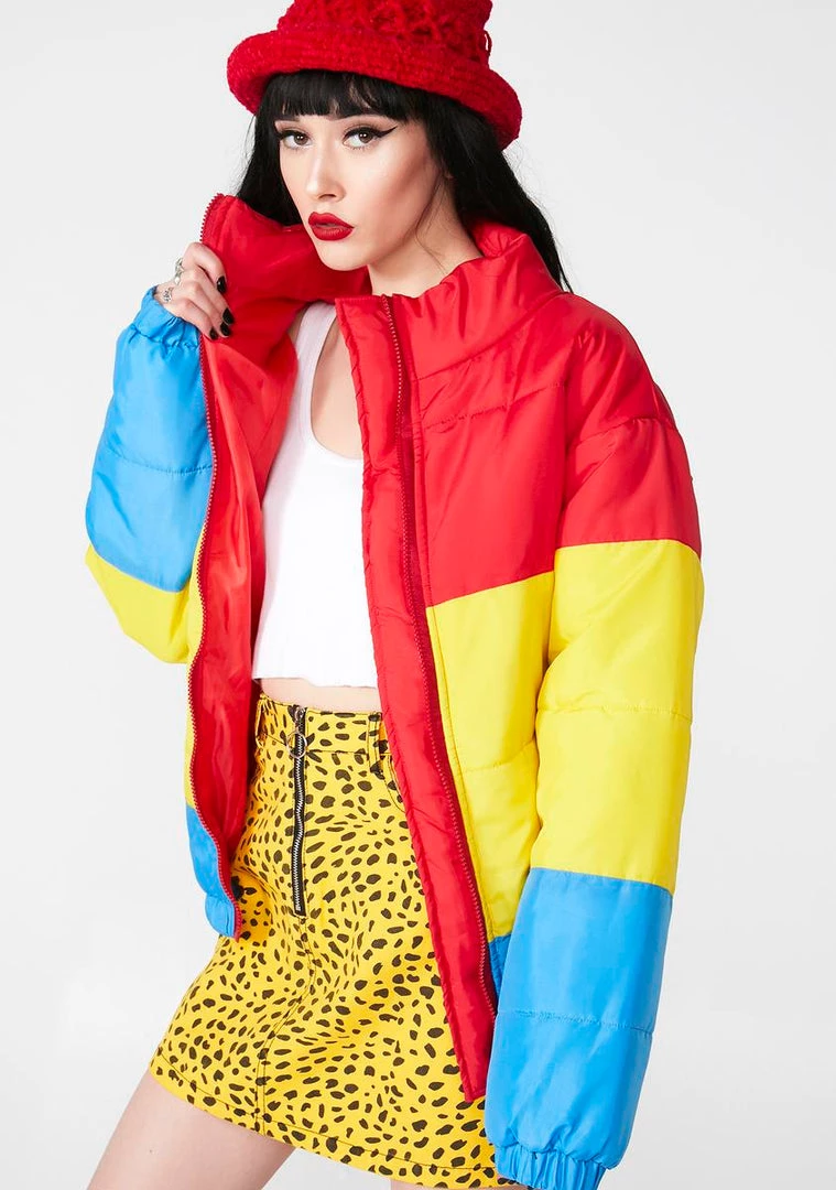 cuz youΓ’ΒΒre the primary princess! Keep it colorful in this dope rainbow puffer jacket that has a high neckline, a front zip closure NΓ’ΒΒ pockets on the sides.