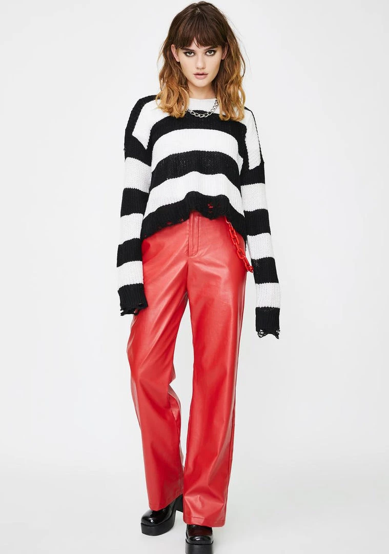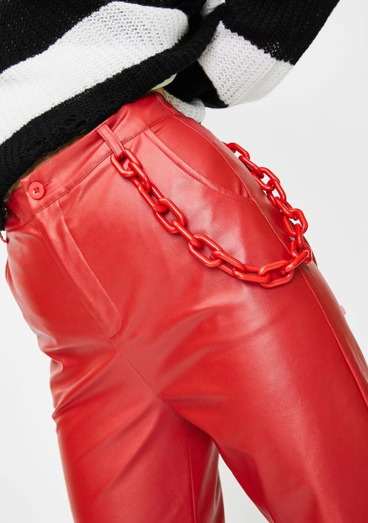cuz you know the vibez. Yer a dope doll in these vegan leather pants that have a relaxed fit, a zip-fly closure Nรขยย a chunky red chain on the side.