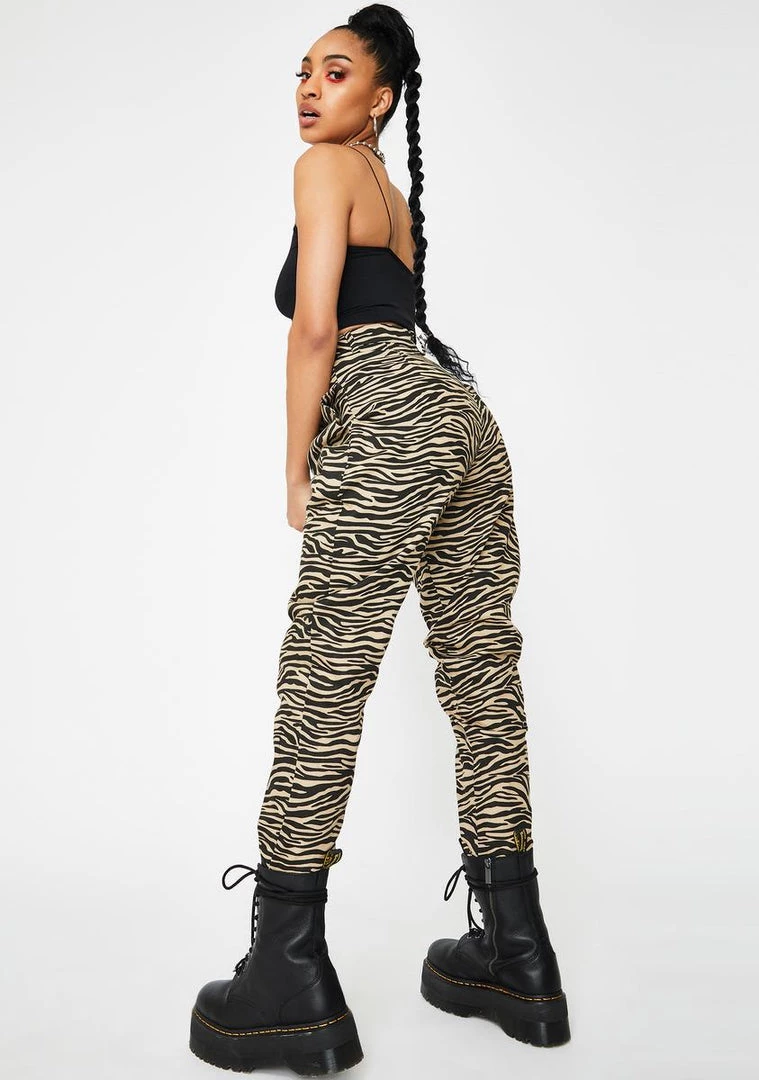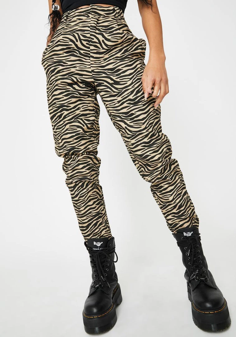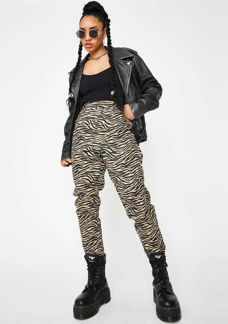 got ya actinΓ’ΒΒ wild, bb! Embrace your animal attraction in these fierce high waisted pants that have a dope zebra print all over, tapered legs, and a front zip closure.