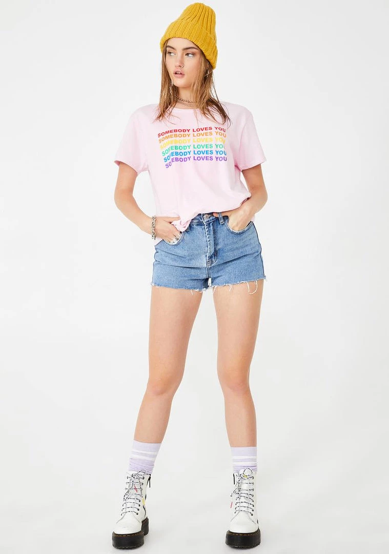 cuz youΓ’ΒΒre never alone, bb! Drop a hint in this adorable AF graphic t-shirt that has short sleeves, a round neckline, NΓ’ΒΒ dope rainbow text graphics!