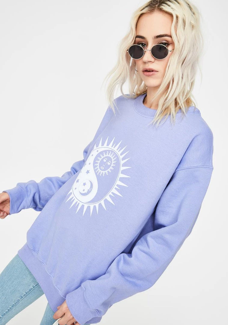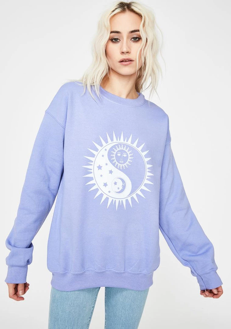 cuz youΓ’ΒΒre one with the cosmos, hun! Make yer wish come true in this mystic sweatshirt that has sun NΓ’ΒΒ moon yin yang graphics on the front, a crew neckline and an oversized fit.