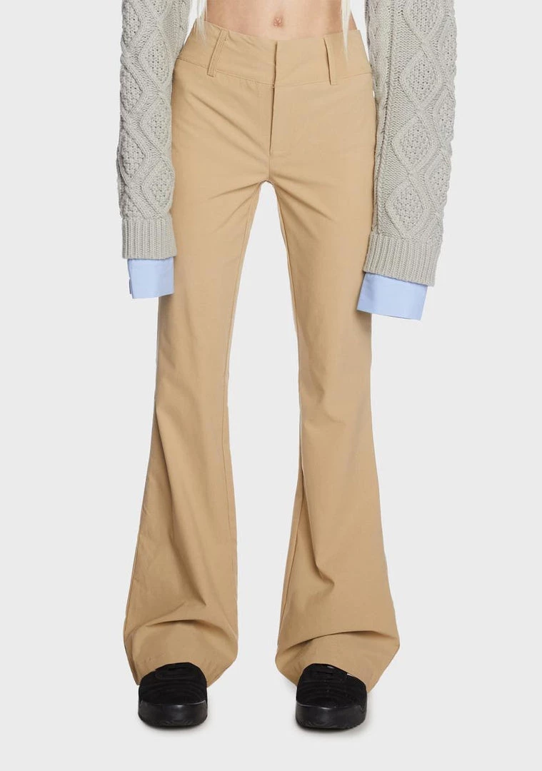 cuz have it your way. These pants have a low rise fit, belt loops, a flared leg silhouette, and a front zipper closure.