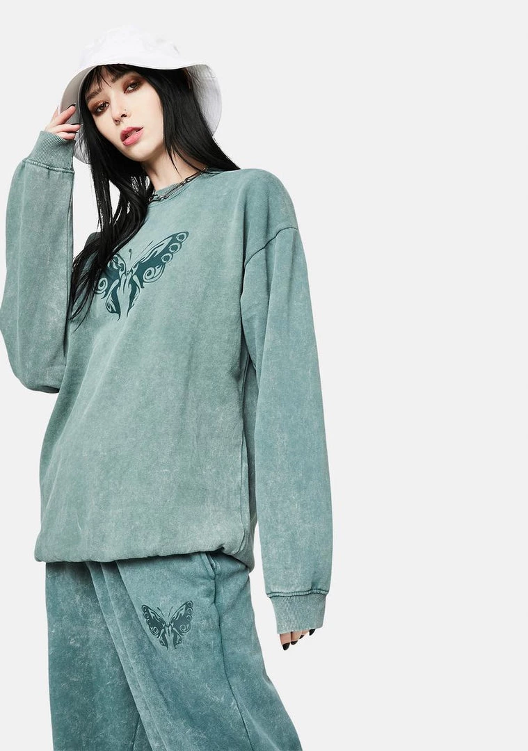 Deals 🎉 Daisy Street Zara Washed Green Butterfly Sweatshirt ⌛
